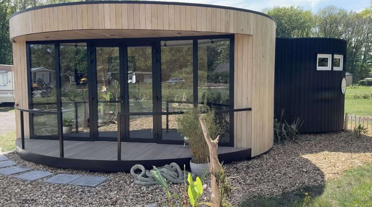 Deze Glamping Pod is geen standaard Tiny House. Dit duurzame, ronde Tiny House van hout is een echte eyecatcher met een luxe afwerking. Dankzij het organische, ronde ontwerp en de royale raampartijen geniet je van licht, ruimte en een prachtig uitzicht. Ideaal als vakantiewoning, trekkershut, luxe guesthouse, thuiskantoor of volwaardig Tiny House.